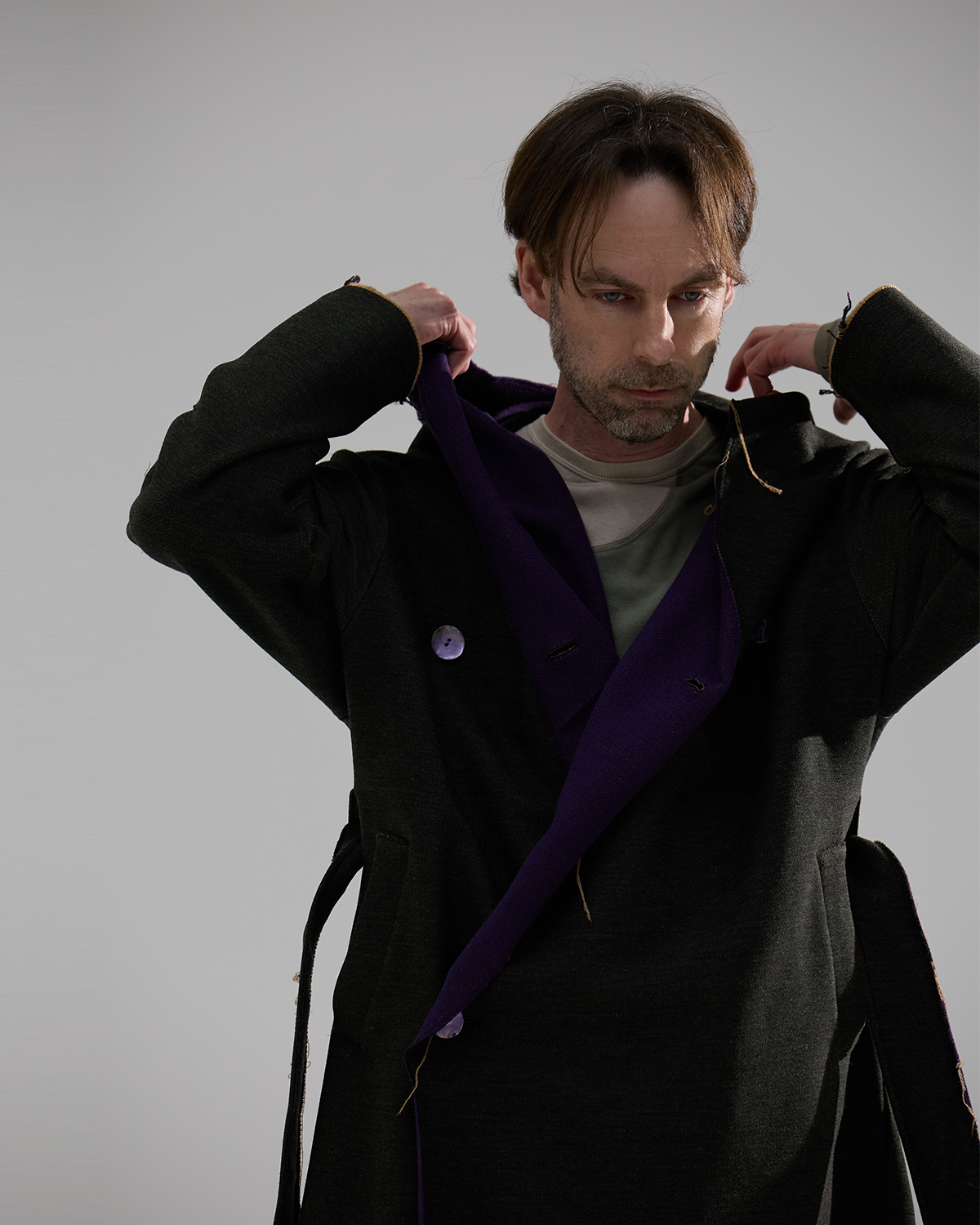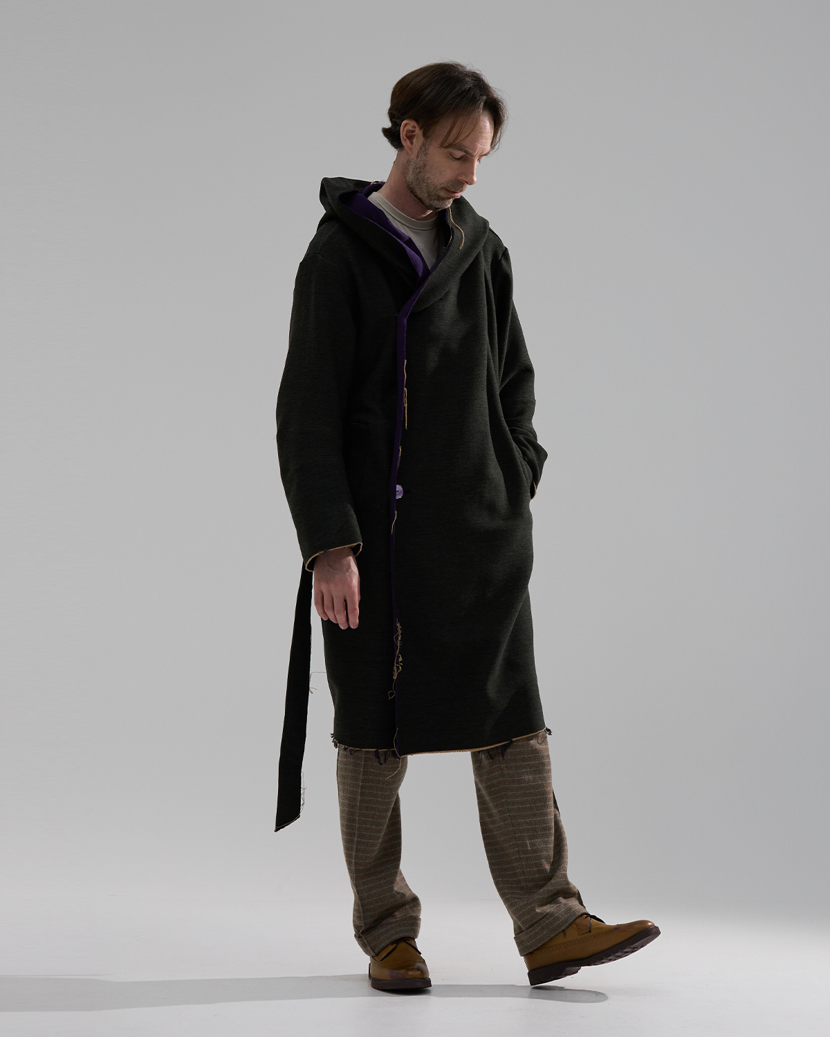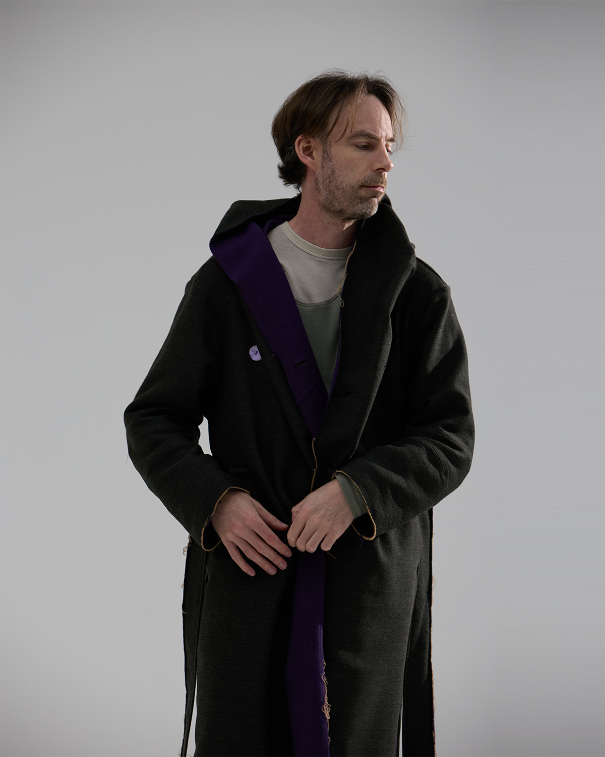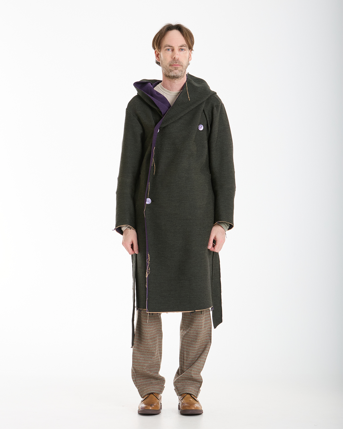 #와쏘의 친구 염정우 모델에게 영감을 받아 착안된 코트. Forest Hunter Coat 는 차분하면서도 러프하고 독특한 매력을 가지고 있습니다. 고급스러운 울 블렌딩 소재로 데끼마감을 하여 무심한 듯 고급스러움을 제공합니다.